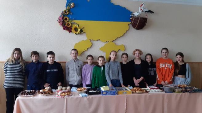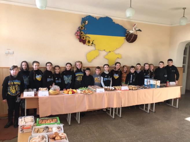 ijòè ïðîäàâàëè ð³çíîìàí³òí³ ñìàêîëèêè – äîìàøíþ âèï³÷êó, ò³ñòå÷êà, êàíàïêè , ï³ööó, ãàëàðåòêè, êåêñè , òîðòè ,ïèðîãè òà íàëèñíèêè, à òàêîæ ïàòð³îòè÷í³ íàë³ïêè òà áðàñëåòèêè ,âèãîòîâëåí³ ñâî¿ìè ðóêàìè. Ðîäçèíêîþ ÿðìàðêó áóëî âèêîíàííÿ ïàòð³îòè÷íèõ ï³ñåíü íàøèìè âèïóñêíèêàìè ï³ä âëàñíèé ìóçè÷íèé ñóïðîâ³ä ! Íàì âäàëîñÿ âòîðãóâàòè ÷èìàëó ñóìó êîøò³â. Àäæå êîæåí ñòàðàâñÿ âíåñòè ñâîþ ÷àñòèíêó äîáðî¿ ñïðàâè äëÿ íàøèõ çàõèñíèê³â. Ùèðîñåðäíî äÿêóºìî óñ³ì áàòüêàì, ó÷íÿì òà ïðàö³âíèêàì øêîëè, âñ³ì ,õòî çàâ³òàâ äî íàñ íà ÿðìàðîê çà âåëèêó ³ ïîòð³áíó ó÷àñòü íà ï³äòðèìêó ÇÑÓ. 78 200 ãðèâåíü ç³áðàíî äëÿ ïîòðåá íàøèõ âî¿í³â !