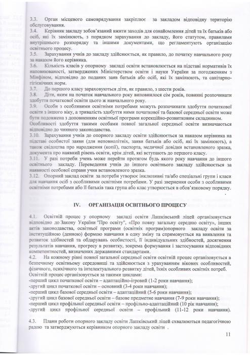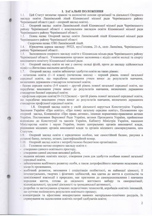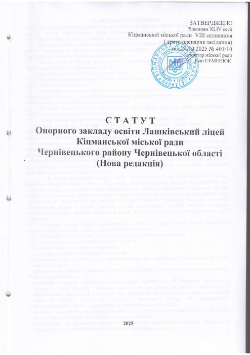 Статут Опорного закладу освіти Лашківський ліцей Кіцманської міської ради Чернівецького району Чернівецької області (Нова редакція)