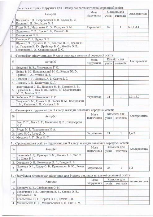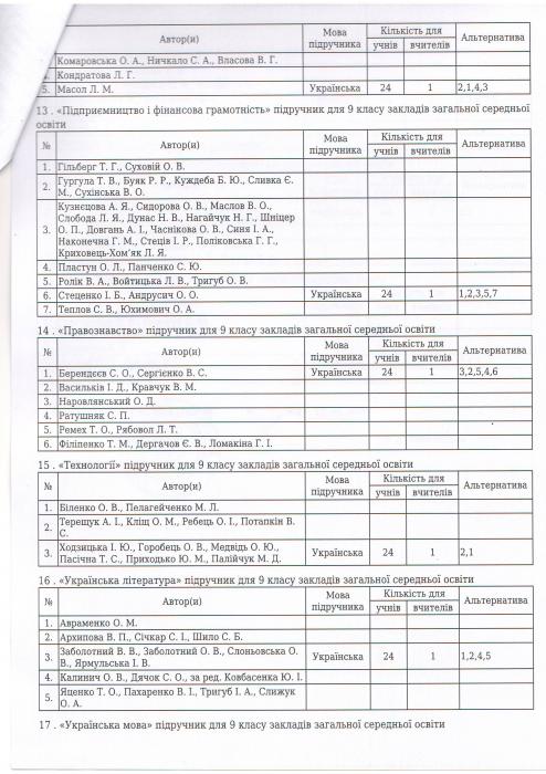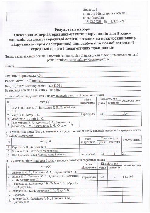 Результати вибору електронних версій оригінал-макетів підручників для 9 класу закладів загальної середньої освіти, поданий на конкурсний відбір підручників(крім електронних) для здобувачів повної загальної середньої освіти і педагогічних працівників