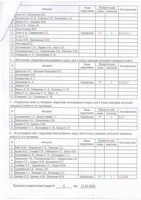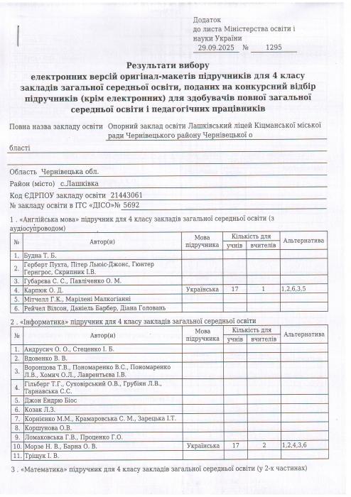 Результати вибору електронних версій оригінал-макетів підручників для 4 класу закладів загальної середньої освіти, поданий на конкурсний відбір підручників(крім електронних) для здобувачів повної загальної середньої освіти і педагогічних працівників